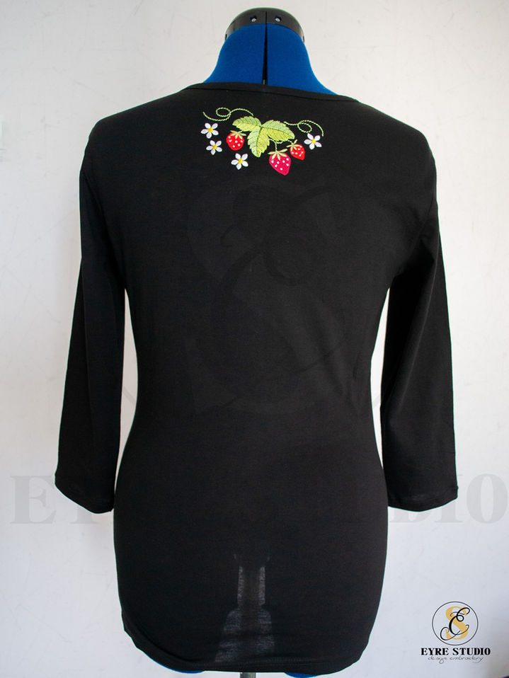 Maasika tikandiga 3/4 käistega o-kaelusega pluus on ideaalne kanda nii igapäevaselt kui ka rahvariietega. Pluus on slim mudel ja on võimalik tellida ka pika käistega.
